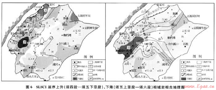 SLSC1層序基準面上升期對應湖盆擴張期,是須二段-須三下亞段沉積期。受早印支運動影響,古龍門山諸島鏈持續擴大上升,形成摩天嶺隆起及九頂山隆起等,并逐漸向東推進。