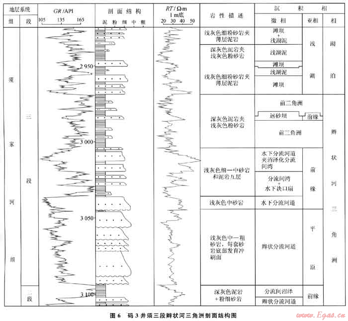 無論是辮狀河還是曲流河三角洲,都可劃分為三角洲平原、三角洲前緣和前三角洲3個亞相。以廣為發育的辮狀河三角洲為例(圖6):