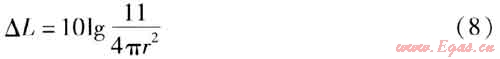 點聲源隨傳播距離增加產生的聲壓級衰減值為: