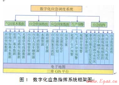 系統總體架構由5大部分組成,分別為:氣田基本數據、應急資源數據、應急預案數據、生產預警和應急指揮。其結構如圖l所示。