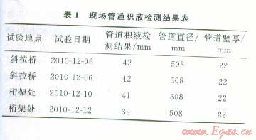 根據大量實驗數據得到相關實驗模型,對“西氣東輸”天然氣管道積液進行現場測量,測得結果如下。