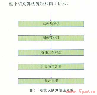 紅外熱像儀采集的圖像首先使用圖像預處理算法(包括中值濾波、目標分割等)將圖像中的噪聲和背景信息去掉。被預處理后的圖像只保留了含有溫度梯度變化的部分目標圖像。使用智能識別算法對圖像進行識別,計算出液體的含量。