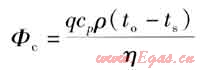 換熱器中制冷劑放熱流量Φc的計算式為: