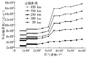 Fig.4 Variation curve of annual transport cost with gas supply scale