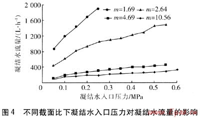 ② 相同凝結水入口壓力下,不同截面比的引射混合式低壓加熱器引射蒸汽量不同。截面比小的,工作噴嘴出口直徑大,凝結水流量也大,產生的負壓及引射蒸汽量也大。