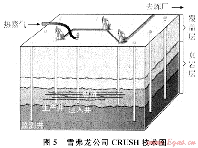 工藝特點:①工藝只涉及氣態(tài)流動,避免了液態(tài)石油的黏滯;②利用單一垂直中心井,減少了操作成本,提高了經(jīng)濟效益,降低了環(huán)境影響;③高壓蒸汽只在油頁巖層內(nèi)循環(huán),減少了向采油區(qū)滲透的地下水;④該工藝還可用作提高石油的采收率;⑤該工藝在超過150m深和8m厚的綠河油頁巖地層中開發(fā)才具有經(jīng)濟效益。