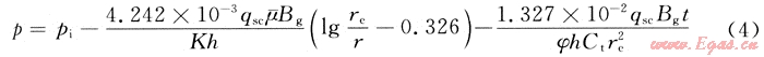 根據滲流力學理論,對于封閉氣藏中定產生產井,當處于擬穩定流動時,在任意一點處有: