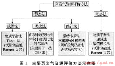 頁巖氣藏儲層連續分布,具有較強的非均質性,包括多種氣體富集機制、控制產能的多樣性。因此,頁巖氣資源評價中既要考慮地質因素的不確定性,也要考慮技術、經濟上的不確定性。不同勘探開發階段適用的方法不同,關鍵參數不同,參數獲取方式不同,資源估算結果也有較大差異。美國形成了多種頁巖氣資源評價方法,如圖1所示。鑒于頁巖氣藏為連續型氣藏,區域分布,USGS在頁巖氣藏資源評價中引入了全含油氣系統評價單元概念。筆者在該概念闡述的基礎上,論述了主要頁巖氣藏資源評價方法。