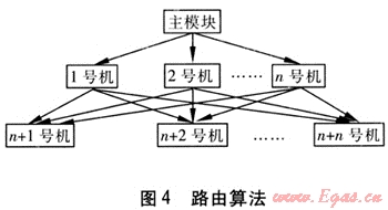 路由算法見圖4。主模塊開始工作后,只要沒有主站命令就開始根據自己儲存的從模塊的檔案逐個去搜索下面的加油機(即發一幀帶有目的地址的數據幀,以下簡稱握手幀)。從模塊收到握手幀后,把握手幀中的地址和自己的地址比較,地址相同則返回一個握手應答幀,完成一次握手。例如圖4中主模塊和1號機、2號機、n號機等握手。對于直接通信不到的從模塊,如圖4中的n+1號機等,則通過1號機、2號機、n號機等能直接通信到的從模塊發中繼幀和它們握手。主模塊的MCU會把這個路由搜索結果生成一個鏈表暫時存在SRAM內,然后繼續學習。每1h把這個鏈表儲存到EEPROM一次。這是因為ATmega64L內的EEPROM只有10×104次的擦寫次數,如果每次都寫到EEPROM里,那么用不了多長時間EEPROM就會被寫壞。電力線的通信狀況雖然有變化,但也不是時時刻刻都在變。所以,也沒必要時時刻刻都放到EEPROM。通過這樣設計,EEPROM的壽命可延長至10年以上。為提高通信可靠性,一般會給從模塊多保存幾條路由路徑,以備冗余[2]。