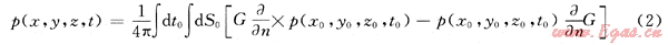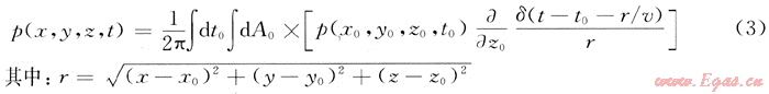 根據邊界條件,由式(2)推導出克希霍夫積分式: