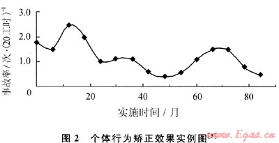 目前,行為科學在現代安全管理科學中日益受到重視,研究成果取得有效的收益。實驗表明,在個體行為矯正方法的實施過程中,由于員工不安全行為的減少,事故率呈周期性下降趨勢(圖2)[5]。根據海因里西(Heinrich)事故三角形可知,即使是輕微事故的減少,也會對預防重大事故的發生產生重要意義。