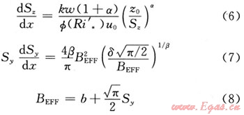 式中下風向不同距離處的擴散系數Sy(x)、Sz(x),以及特征寬度b(x)、密度ρ(x)和溫度T(x)的求解,需要滿足下列守恒及特征擴散參數關系。