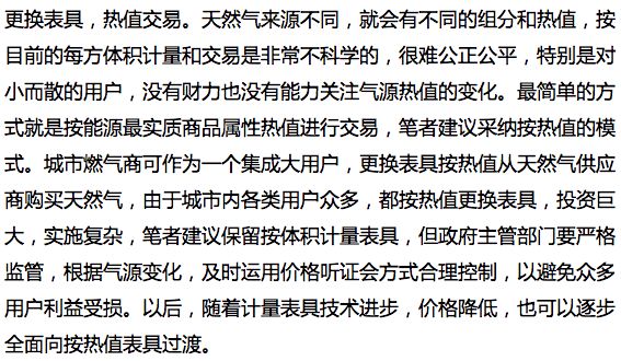 綜上所述,天然氣價格改革并按熱值交易是天然氣產業鏈健康可持續發展牛鼻子,管住中間獲得合理基本利潤后,適時順價,就能充分發揮市場的功能,引領天然氣大發展,助力中國大規模煤改氣,盡早打贏藍天保衛戰。