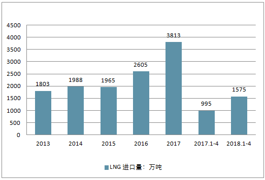 2013-2018年我國 LNG 進口量(單位:萬噸)