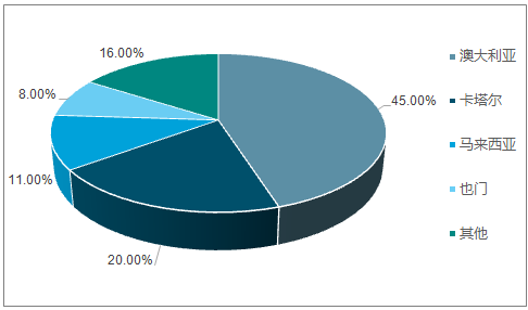 2017 年我國LNG 進口主要包括澳大利亞、馬來西亞、卡塔爾、印度尼西亞,其中澳大利亞占到總量的 45%。近年來,由于我國上游國產氣增量不足, 且進口管道建設還需一定時間,因此LNG 進口量近幾年大幅增長, 2013-2017 年年均復合增長率達到 20.59%