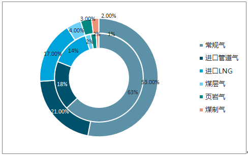 2015-2017 年國內天然氣供給結構變化(外環(huán)為 2017 年,內環(huán)為 2015 年)