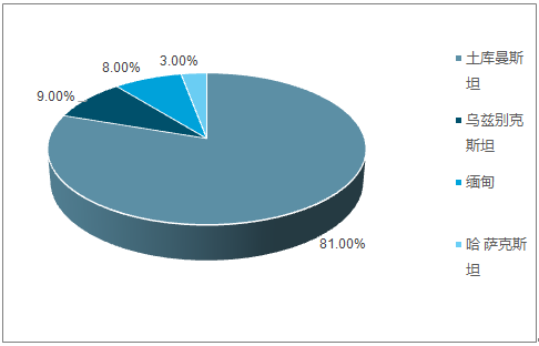 我國的進口管道氣主要來自于土庫曼斯坦, 2017年我國從土庫曼斯坦共進口管道氣 2451 萬噸(約合 328 億立方米),占去年管道氣進口總量的 80.5%,其次烏茲別克斯坦、緬甸、哈薩克斯坦也是我國的管道氣進口國