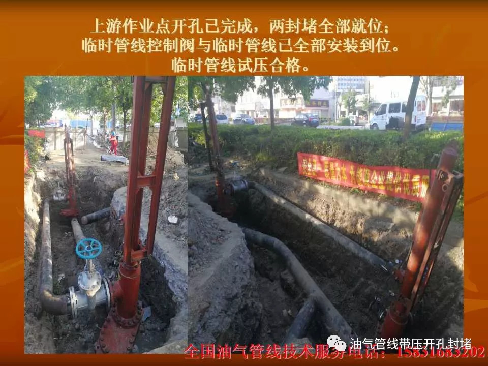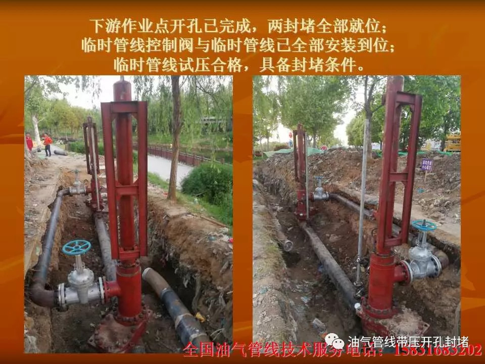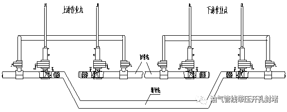 本次改造施工采用四封四堵不停輸封堵工藝,該種工藝優點在于:所有工序均在不影響管線內介質正常輸送的狀態下進行且減少了長距離鋪設旁通管線的工作量,縮短了施工周期,使工作進行的井然有序,安全可靠。