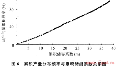 由圖6可以看出:日產氣量與累計儲容系數相關性很好。表明分層產量除受地層系數影響外,還與儲容系數有關,即高滲層的儲量決定了氣井的產量水平和穩產能力。綜合分析認為,四-1單元高滲層中儲量所占比例較少,不能滿足目前氣井配產的穩產需求,由此表現出氣井產量遞減。
