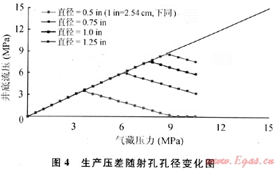 3) 在各種條件變化時,如射孔孔徑的變化、射孔相位的變化、氣藏壓力的變化等,均會使生產壓差發生改變。