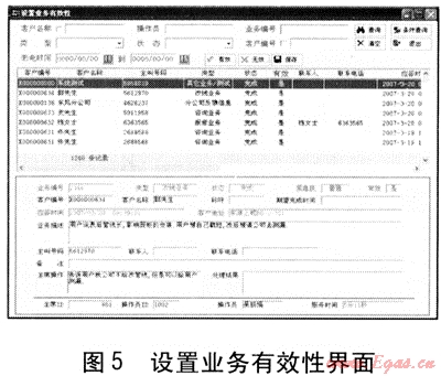 設置業務有效性界面見圖5,大慶燃氣客戶服務系統采用先進的CTI技術,友好的語音導航服務提高了服務質量;電話接入后系統可自動定位客戶,實現客戶數據與電話的同步轉移,大大提高了坐席的工作效率和服務水平;可實現客戶發送傳真的自動接收,支持人工在線派發和處理,提高了效率,降低了運營成本,可以滿足將來不斷發展的燃氣客戶業務需求。該系統的具體功能如下: