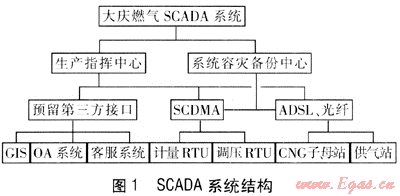 各調壓箱、計量箱、商業用戶計量間、CNG站地理位置分散,若對各站(箱)的監控采取人工記錄、逐級匯報的方法,則存在著上報數據不及時,對設備故障發現不及時等安全隱患。SCADA系統實現了對現場生產數據的實時采集與監控和對生產過程的調度指揮,保證了安全平穩供氣。