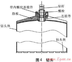 在鉆頭切削鉆進的過程中,必須有水沖洗鉆頭,水流的速度可自行控制,為了使水流入正在旋轉(zhuǎn)的鉆頭內(nèi),設計了入水口,實現(xiàn)了水對鉆頭的冷卻、潤滑和排屑作用。