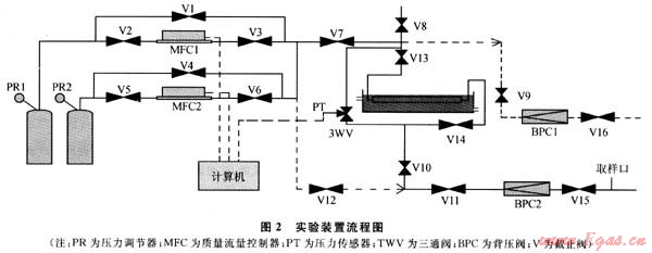 用如圖2所示的實驗流程進行脫硫和再生。采用甲烷硫化氫混合進氣初步模擬煤層氣,其中H2S含量222.3mg/m3,總流量為280mL/min。脫硫床為內徑10mm、長250mm的不銹鋼管。床層溫度維持298K,再生時將床層放至常壓并用25%流量的甲烷正向吹掃。