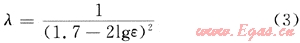 式(2)中段塞密度可取原油密度,段塞速度可取流體混合流速,因沖擊流處于水力粗糙區,在該流態區內,λ僅與管壁相對粗糙度(ε)有關,可用尼古拉茲公式求水力摩擦系數,計算公式見式(3):