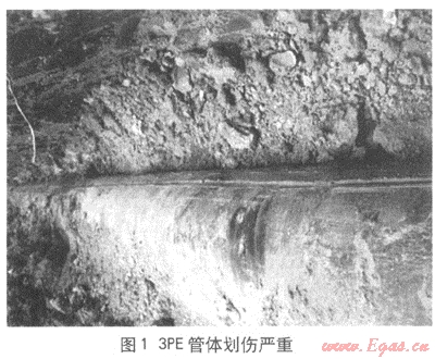 (1) 導向孔洞的彎曲部分及孔洞中凸起的巖石、卵石、礫石會對耐沖擊性能好、相對較柔軟的“3PE”防腐層造成摩擦和劃傷(圖1)。