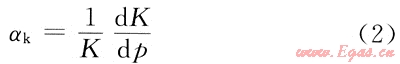 對αk表達式進行分析,可發現它與巖石壓縮系數具有相似的形式和物理意義,是基于巖石受力變化后發生線彈性變形的假設提出的,其中有兩點局限性:①完全把滲透率當成一個幾何參數來處理,而沒有考慮到滲透率實際上是一個功能參數,不但與巖石的性質和結構有關而且也與滲流過程中的流體密切相關;②對于低滲透巖石來說,假設為常數(即變形為線彈性變形)與實驗結果不相符,采用指數式來回歸實驗數據時,數據的相關性不是很理想。