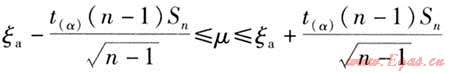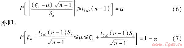 根據(jù)數(shù)理統(tǒng)計定理,取自正態(tài)總體的子樣ζ,其子樣均值ζa、子樣方差Sn2、總體均值μ、總體標準差Sn構成統(tǒng)計量A,A是自由度為n-1的t變量,它服從t(n-1)分布。