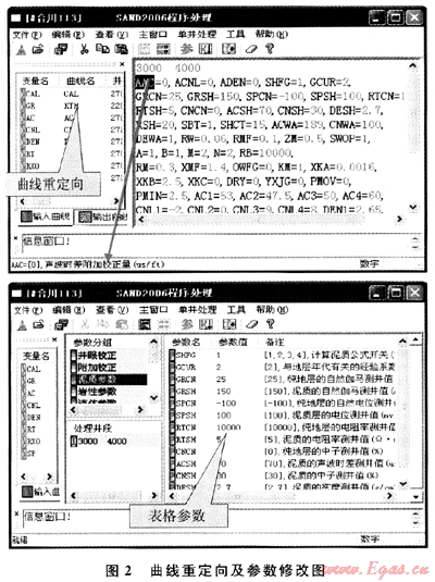 無論是文本方式還是表格方式下,均可快速得到當前參數的交會圖[5],以便用戶快速修改處理參數,提高工作效率。 2 儲層參數計算模塊