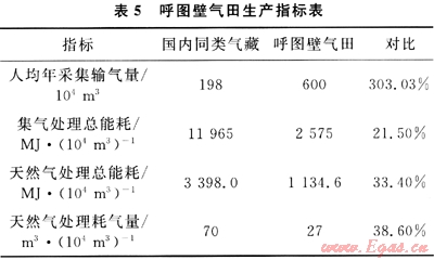 地面工程設計與工藝技術方面突出了規模性、適應性,先進性、科學性、安全性,以經濟效益為指導思想,采用了8項新工藝新技術,對地面工程設計進行了優化,與國內同類氣藏相比(表5),各項指標均達到先進水平[5~6]。