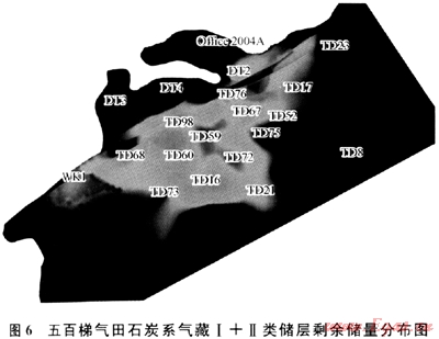 1) 精細氣藏描述技術。形成地震儲層預測技術、裂縫精細表征技術、氣藏精細地質建模技術、氣藏開發動態監測技術、精細氣藏數值模擬技術、剩余儲量描述技術、治水挖潛增效開發技術等7個精細氣藏描述主體技術系列。老氣田精細氣藏描述成為重新認識和評價老氣田,弄清剩余儲量分布,明確挖潛目標,制訂合理開發調整方案的重要手段。通過對五百梯氣田石炭系(圖6)等11個氣藏進行精細描述,核增地質儲量317.16×108m3,增加可采儲量173.41×108m3,延長穩產年限2~5a,提高采收率5.8%~12.5%,效果顯著。