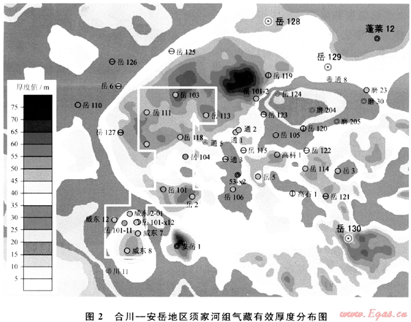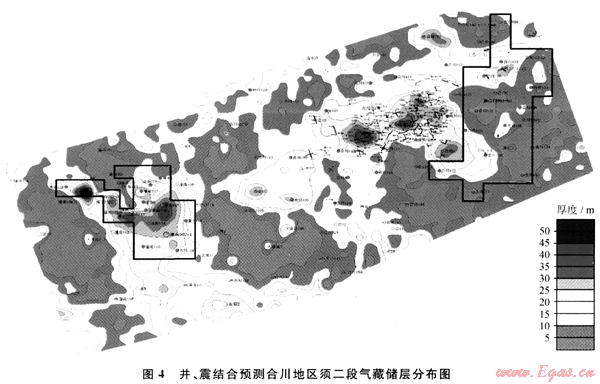2) 碎屑巖氣藏勘探技術。立足前陸盆地發展模式,認識了盆地結構控制須家河組氣藏類型,前陸隆起帶和斜坡帶具有形成大中型氣藏的有利條件,有利沉積相、繼承性古構造、高豐度烴源區和裂縫發育帶是氣藏富集帶;建立了二維地震網格法采集模式,形成和發展了大面積砂巖儲層預測技術和識別致密砂巖中高孔儲層的地震綜合預測技術;建立了致密砂巖儲層下限綜合評價技術,創新集成的低電阻氣層測井綜合識別技術,有效解決了大川中“砂中找好砂”的儲層地震預測難題(圖2)。通過這些技術的全面應用和實踐,已初步形成了大川中須家河組氣藏三級儲量萬億立方米規模儲量區。