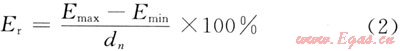 式中Emax和Emin分別為規定流量下,測量示值相對誤差的最大值和最小值;dn為極差系數(當測量次數n=3時,dn=1.69)。
