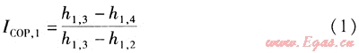 式中ICOP,1——直膨式太陽能熱泵系統的制熱性能系數