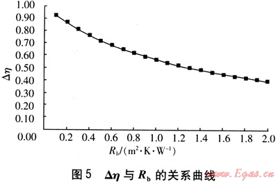 設定Rpv=1.323m2·K/W,由式(5)得到△η與Rb的關系曲線,見圖5。節能率隨基礎墻體的熱阻增大而降低。