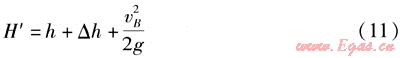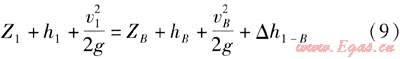 斷面1-1與定壓點B有如下關系:
