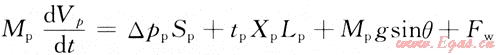 清管器兩側(cè)壓力損失和壁面阻力公式: