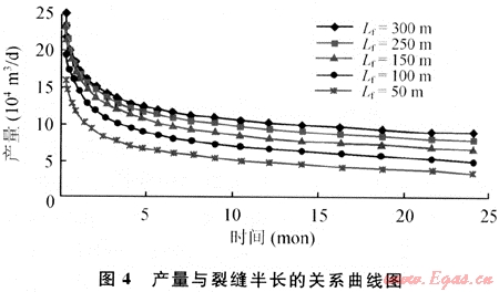 4.2 裂縫半長對氣井產量的影響