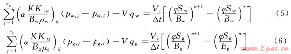 上述方程中包含了4個基本變量:Og、pw、Sw、Sg,為了完整地描述方程,還需兩個附加的輔助方程: