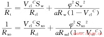 薩曼杰佩氣田主要目的層XVp、XVm的主要儲集類型為孔洞型,裂縫發育,有一定的泥質含量,且目前難于確定飽和度參數,為此選用分散泥質的西門度方程求取含水飽和度: