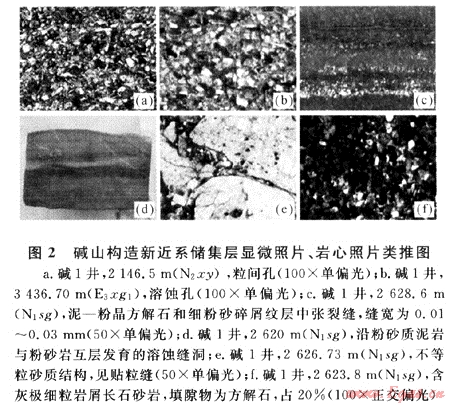 儲層巖性為泥質粉砂巖、粉砂巖、細砂巖、泥灰巖和灰質砂巖類,沉積物粒級偏細。儲集空間以原生粒間孔隙為主,存在部分溶蝕孔隙和溶蝕裂縫(圖2)。
