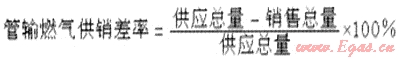 燃氣供銷差率指報告期燃氣供應量和銷售量之間的差量。供應量可扣除溫差、壓差的校正量(按各地區規定的系數)。按不同氣種分別統計。計算公式: