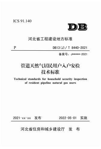 《管道天然氣居民用戶入戶安檢技術標準》DB13(J)/T8440-2021