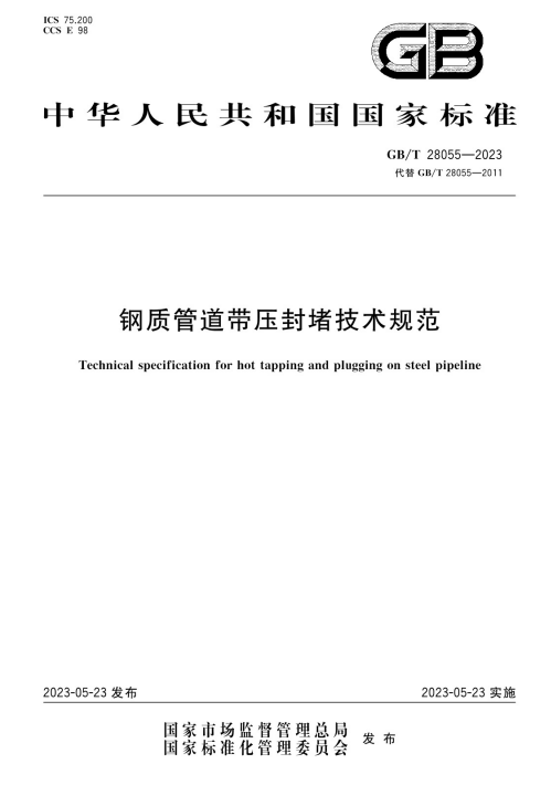 本文件代替 GB/T 28055-2011《鋼質管道帶壓封堵技術規范》與 GB/T 28055-2011 相比,除結構調整和編輯性改動外,主要技術變化如下: