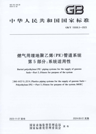 燃氣用埋地聚乙烯(PE)管道系統 第5部分:系統適用性GB/T 15558.5-2023