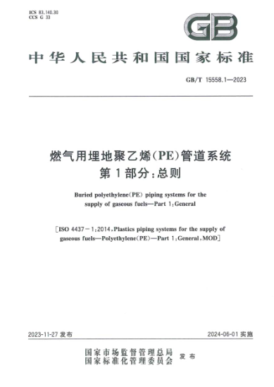 燃氣用埋地聚乙烯(PE)管道系統 第1部分:總則GB/T 15558.1-2023